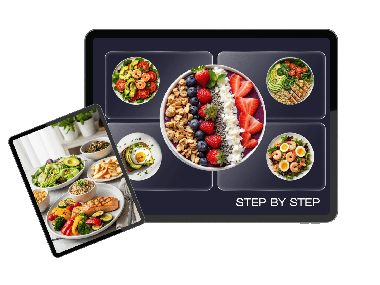 Харчування у програмі адаптоване під твою індивідуальну калорійність, щоб твій шлях до результату був здоровим, стабільним і комфортним.